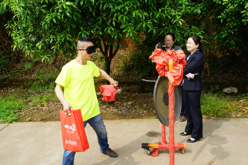 市民們一路向前,來到了簽到折返點明峰生態(tài)園水庫,也就是我們的二號游戲點,開始蒙眼打鼓游戲,大家躍躍欲試,挑戰(zhàn)成功者也收獲了特別獎品。