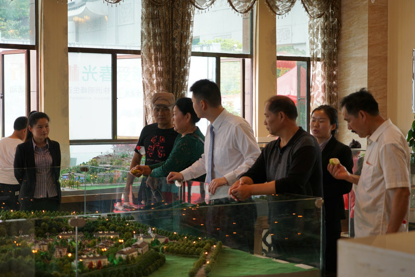 在明峰庭院售樓大廳里,大家一邊品嘗著各式水果,一邊了解自己意向中的樓房,愜意又舒適。