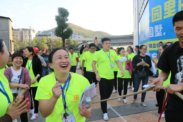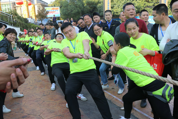 明峰庭院設(shè)賽場(chǎng),拔河競(jìng)賽助威酣。